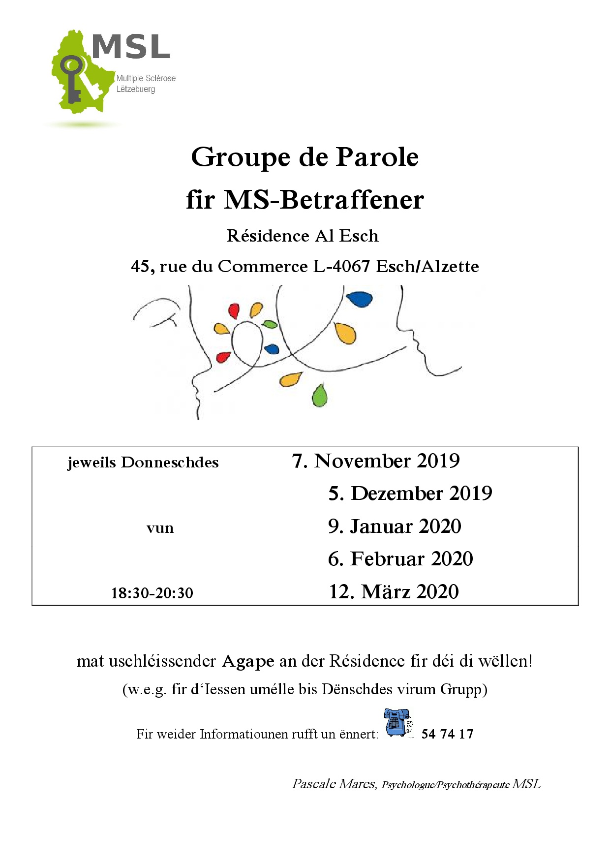 Fir d’Schouljoer 2020-2021 bilde mir nees en(g) apprenti(e) auxiliaire de vie aus. Dir hutt dat éischt Joer vun der formation initiale geschwënn ofgeschloss a sicht no enger Ausbildungsplaz? Mir bidden eng villsäiteg Aarbecht an engem flotte Kader am Déngscht vu Mënsche mat MS. Interesséiert? Da schéckt är Kandidatur mat CV un : [email protected]